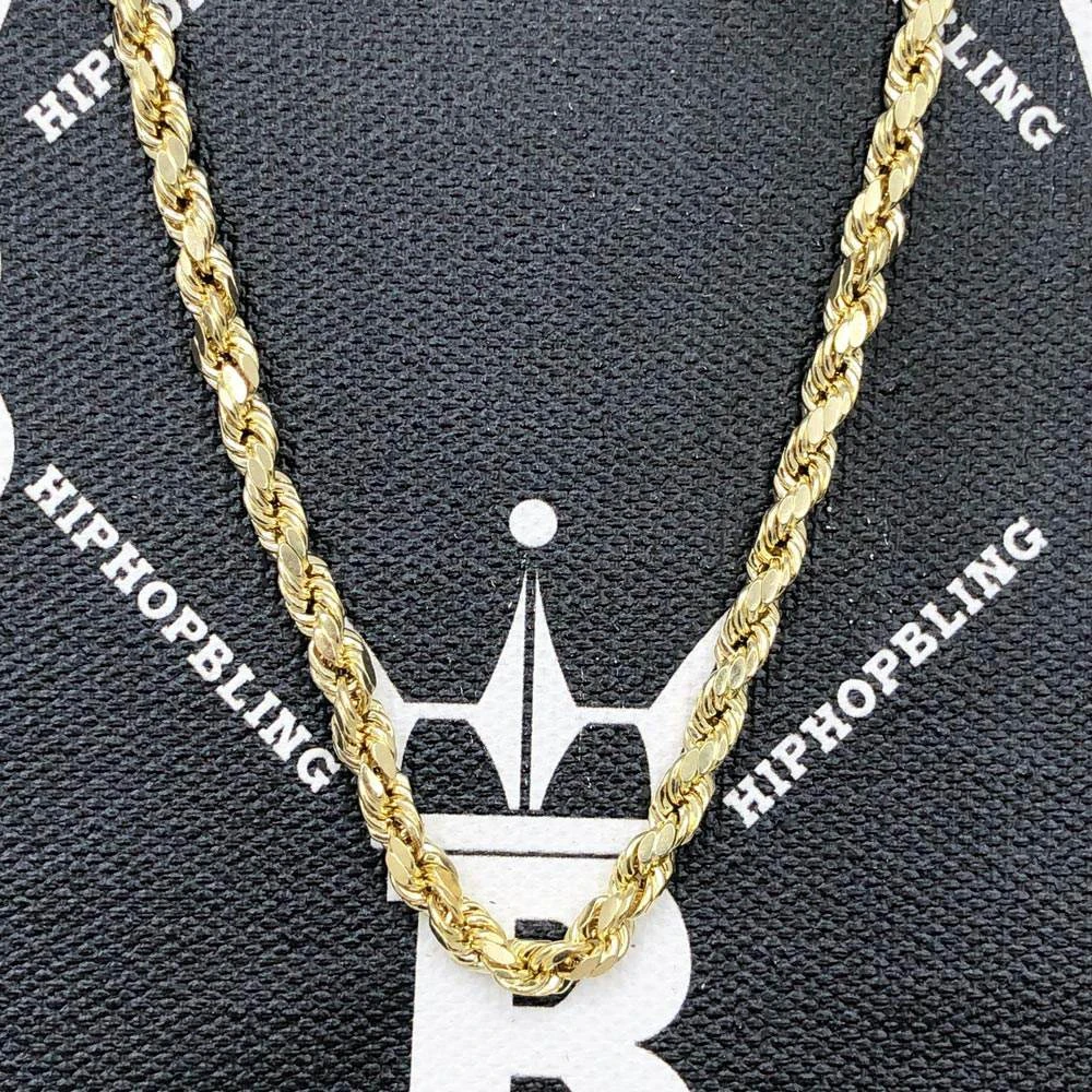 10K Yellow Gold Diamond Cut French Rope Chain. Crafted from Solid 10K Yellow Gold and then Diamond Cut for extra shine. Lightweight made to get you a bigger look for less money.