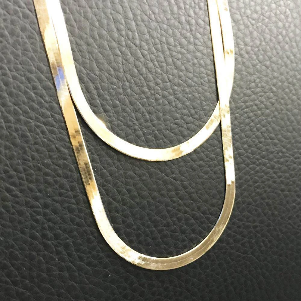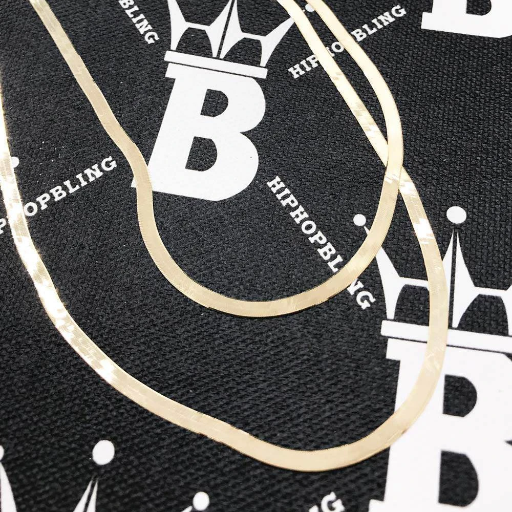 10K Yellow Gold Herringbone Chain. Crafted from Solid 10K Yellow Gold and high polished for a mirror like gold shine. Herringbone chains have been a classic 10K gold necklace for 30 years and will continue to be popular and fashionable. In 2012 we collaborated with Hip Hop Artist Mann to provide a herringbone chain for his Music Video Titled “Gold Herringbone”. Â