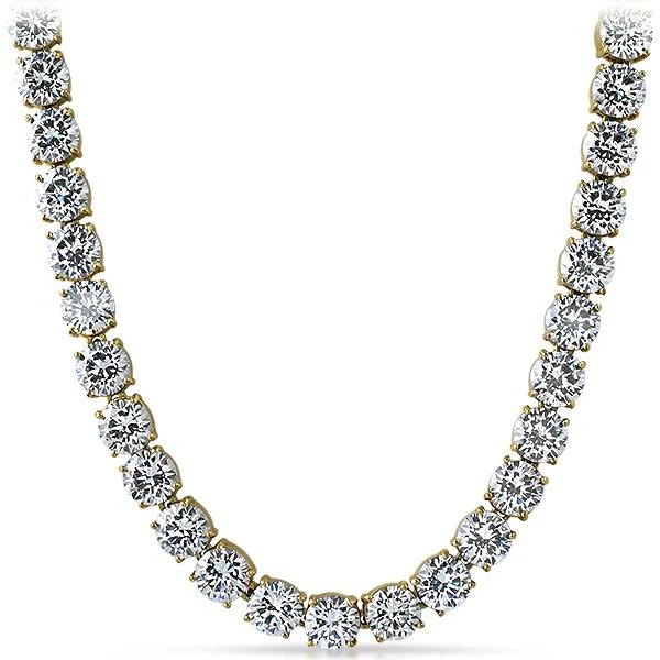 The chain with the most bling, introducing the 10MM massive simulated diamond chain. Each and every stone is securely set with prongs on this bling bling chain. The links are crafted with 316L Stainless Steel and high polished for the best comfort. 18K IP gold wrapped to look and feel genuine gold at a tiny fraction of the cost of solid gold. Shine like a million bucks with this bling bling tennis chain. Order your own 10MM iced out chain today!