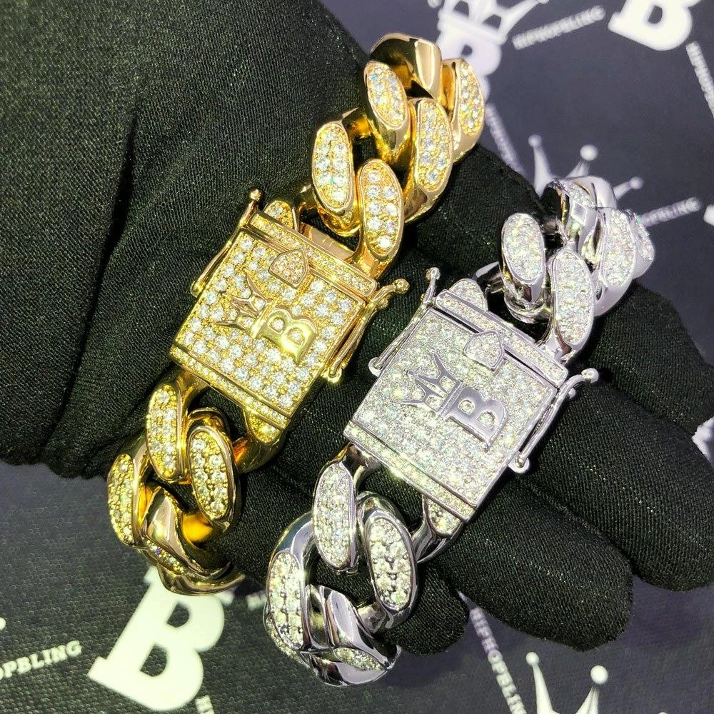 HIPHOPBLING 20MM Miami Cuban Link Hip Hop Bling Bling Bracelet.  Features a secure triple lock Iced Out Clasp with the Hip Hop Bling Logo. Highly detailed with intricate details and stone setting. All stones are VVS Simulated Diamonds that are prong set.  HIPHOPBLING Offering you the Best Hip Hop Jewelry Since 2003