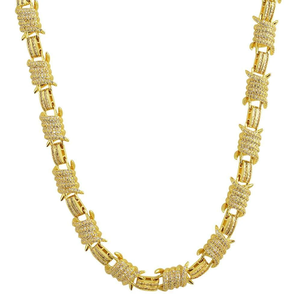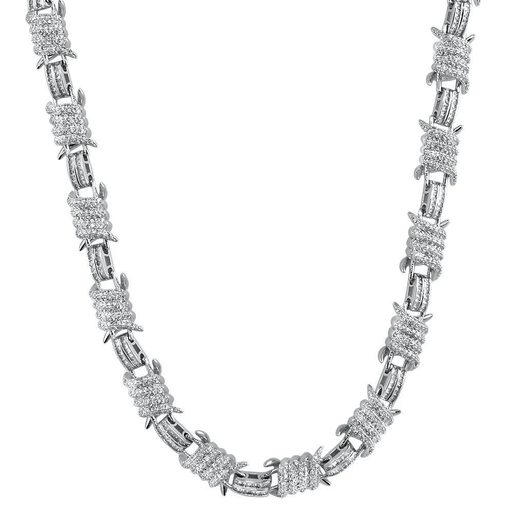3D Barb Wire Baguette Bling Bling CZ Iced Out Chain. Designer made with precision hand setting. New 3D Model with Baguette simulated diamonds. Highly detailed with intricate details and stone setting. All stones are VVS Simulated Diamonds that are prong set.