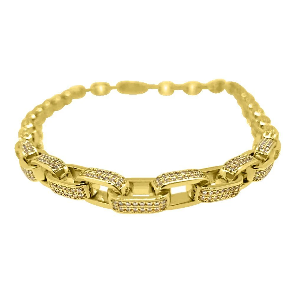 Popular 3D Box Link Hand Made Bling Bling Chain. Features 32 CZ Simulated Diamonds micro pave hand set (not glued) fully covering the links with ice. This means you have about 1500 stones on the 16″ Choker Length. Yes the stones are set on BOTH sides of each link for a full 3D Bling Bling effect. A lot of hard work and labor went into each and every link. 14K Gold dipped to look real and last long. Ice up your neck with this amazing designer inspired bling bling chain and have them haters jealous. All prong set simulated stones for the most realistic and authentic look and shine. Secure box clasp. This is a great hip hop chain if you want to show major bling around your neck. Measures 8MM Wide from the side and 4MM wide on the stone side. Order today.