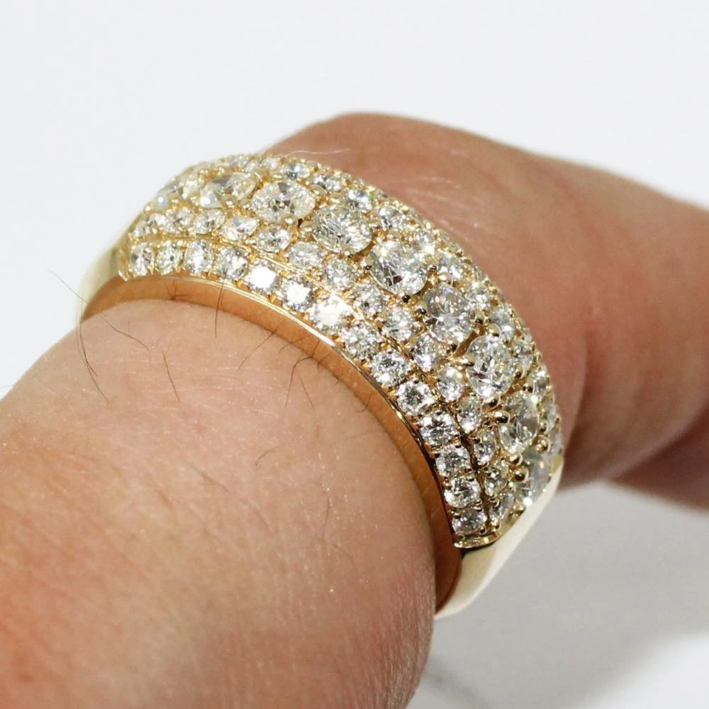 5 Row 2.20cttw Diamond 14K Yellow Gold Ring. Featuring 5 Rows of Diamonds Prong Set. Popular style Hip Hop Bling Bling Ring is crafted with 14K Yellow Gold and Genuine Natural Diamonds.