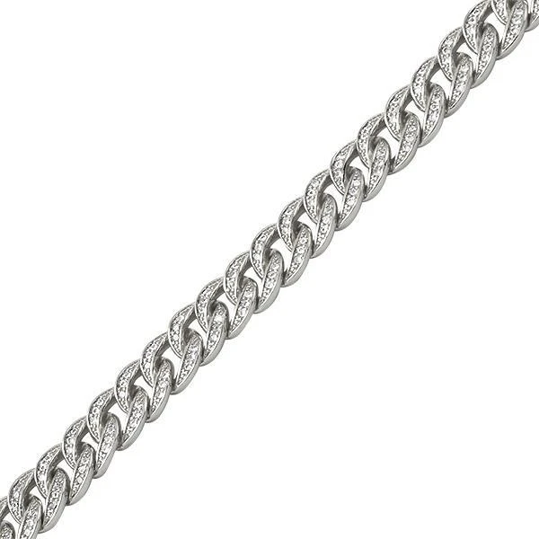.925 Silver 8MM Rhodium Bling Bling CZ Cuban Links Bracelet.  Real .925 Sterling Silver used to craft this classic Cuban Link Iced Out Bracelet. Each VVS CZ is hand set with prongs to have the same bling bling look and feel like genuine diamonds for a fraction of the cost. Â