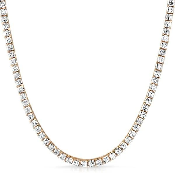 Exotic Asscher Cut CZ Diamond Tennis Chain. Rare unique cut Asscher simulated diamonds prong set into the tennis chain. Quality crafted with real .925 Sterling Silver. This looks and feels like a $50,000 chain.