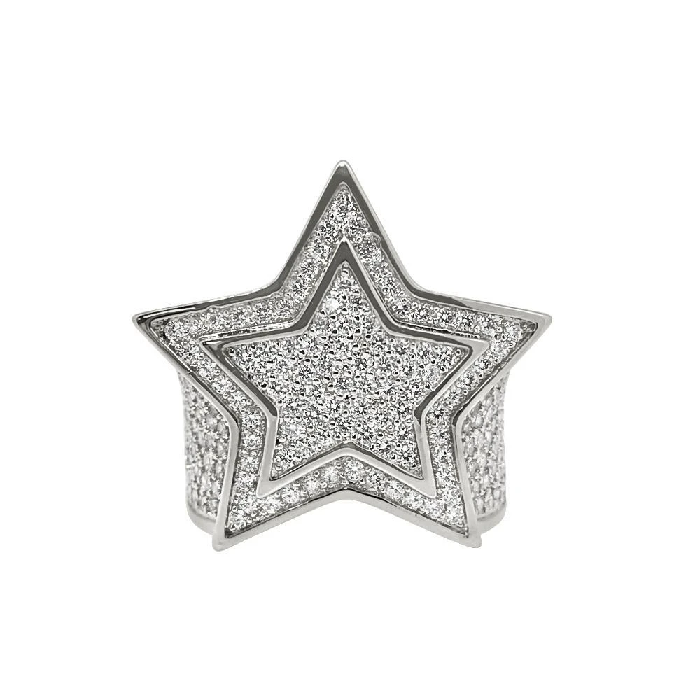 .925 Sterling Silver Super Star Bling Bling Ring. Shine up your fingers with this shiny Super Star Hip Hop Ring. Crafted from fine .925 Sterling Silver and RhodiumWrapped to look and feel like solid White Gold or Platinum for a fraction of the cost and keep on shining. Order your bling bling ring today andStyle like a rap star!
