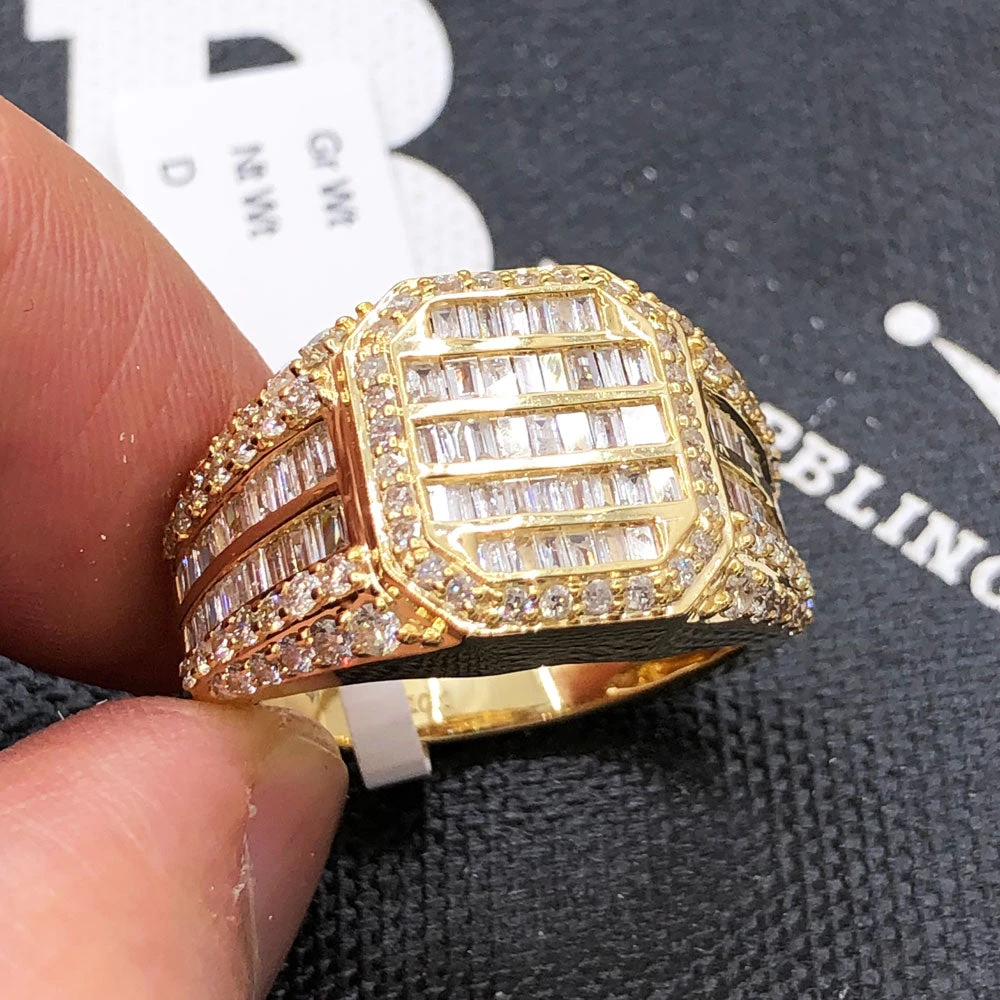 Baguette CEO Diamond Ring 2.10cttw 10K Gold. Quality crafted Diamond ring iced out with a bling bling shine. Custom Designer looking Mens Bling Bling Ring. Precision detailed prong Diamond Setting on this Diamond iced out ring. Beautiful big and bold look. Popular style Hip Hop Bling Bling Ring is crafted with 10K Yellow Gold or 10K White Gold and Genuine Natural Diamonds.