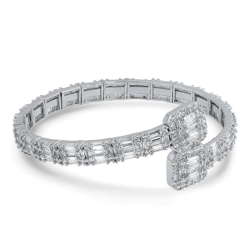 Baguette Cluster Bangle CZ Iced Out Hip Hop Bracelet. Classic and Unique Style Bling Bling Bangle Bracelet. High end quality setting to maximize bling bling shine and look expensive. Incredibly icy with VVS simulated diamond stones lighting up your wrist with the best shine possible. This iced out Bracelet shines like genuine diamonds.  All hand setting, no glue. Hand Crafted to look, feel, and Shine Like Genuine Diamond Hip Hop Jewelry. We can custom make in 10K and 14K Solid Gold with Real Diamonds. Shine with the best hip hop jewels in the game.