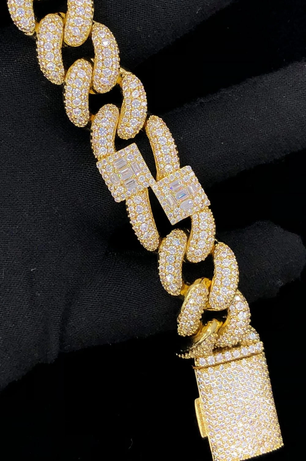Unique Baguette Cluster & Pave Cuban CZ Iced Out Hip Hop Bracelet. Classic and Unique Style Bling Bling Bracelet. Incredibly icy with VVS simulated diamond stones lighting up your wrist with the best shine possible. This iced out Bracelet shines like genuine diamonds.  All hand setting, no glue. Hand Crafted to look, feel, and Shine Like Genuine Diamond Hip Hop Jewelry. Shine with the best hip hop jewels in the game.