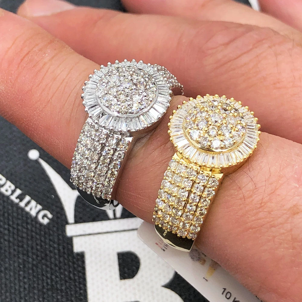 Baguette Sunburst Diamond Ring 2.18cttw 10K Gold. Quality crafted Diamond ring iced out with a bling bling shine.  Custom Designer looking Mens Bling Bling Ring. Precision detailed prong Diamond Setting on this Diamond iced out ring. Beautiful big and bold look. Popular style Hip Hop Bling Bling Ring is crafted with 10K Yellow Gold or 10K White Gold and Genuine Natural Diamonds.