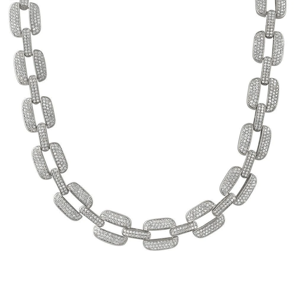 Bar Link Iced Out Bling Bling Chain. Highly detailed with intricate details and stone setting. All stones are VVS Simulated Diamonds that are prong set. Order your unique iced out chain today.