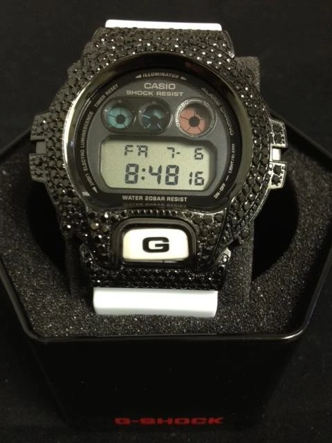 Be the first to review “Black Bling Bling CZ G Shock White Watch DW6900” Cancel reply