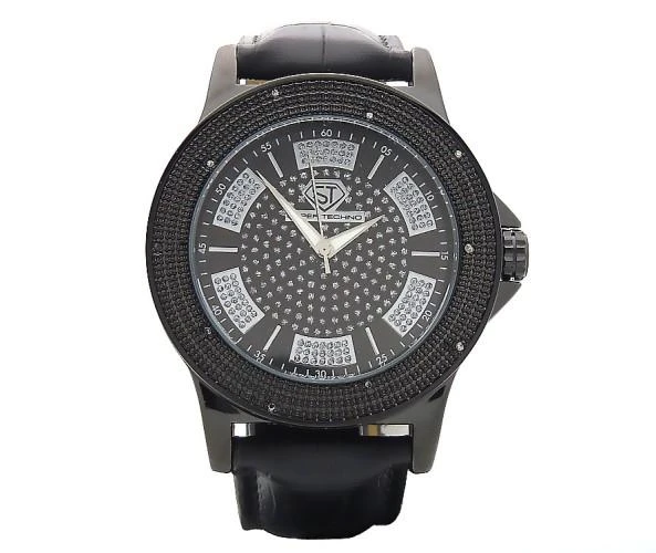 Super Techno offers the hottest hip hop diamond watches. This beautiful watch has 10 genuine diamonds around the bezel. Black hip hop jewelry is very popular. This black hip hop watch is sure to turn heads. For a very affordable price you can have your very own real diamond hip hop watch. It is very heavy built and designed to last. It has a hard sapphire crystal to resist scratching and breaking. The time is powered by a high end Japanese quartz movement. This watch comes with a box and 2 extra watch bands.Manufactured by Joe Rodeo, A Revolution in Diamond Watch manufacturing. HipHopBling.com is an Authorized Distributor of Joe Rodeo Diamond Watches, JoJino Watches, and Super Techno Diamond Watches. This Super Techno Diamond timepiece features: