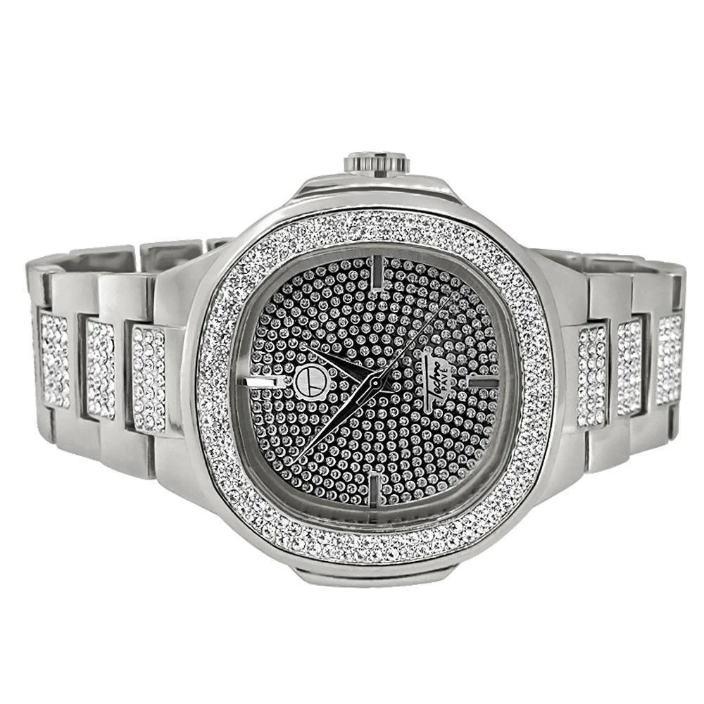 Bling Bling Watch Silver Modern Style. Best selling hip hop watch! Rhodium plated with fake diamonds covered the bezel and center links of the metal band. Shine like a big time rapper with this hip hop watch on your wrist. Amazing value for the money.