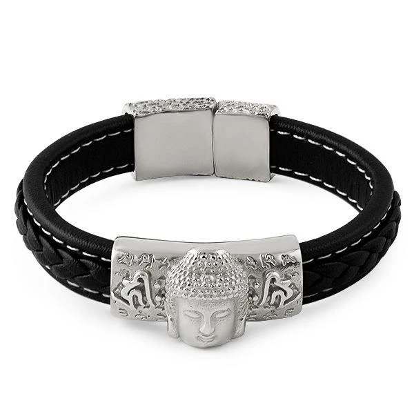 Be the first to review “Buddha Black Leather Stainless Steel Bracelet” Cancel reply