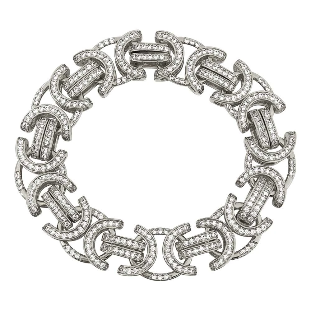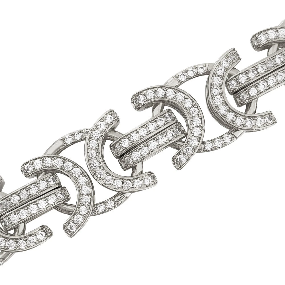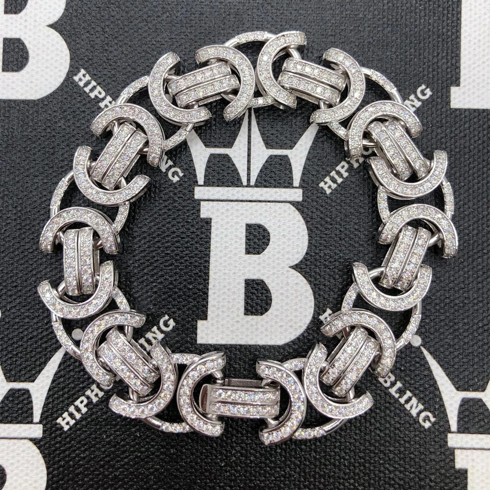 Byzantine Moissanite Bracelet Iced Out .925 Sterling Silver. This iced out Bracelet is simply breathtaking and displays an incredible bling bling shine. We insisted on using the finest Moissanite stones available to craft these perfect high end ‘diamond’ Iced Out Cuban Link bracelets. Moissanite stones are carbon based stones just like real Diamonds*. The benefit of our Moissanite Cuban Link bracelets are that you get a better shine for much less money. Our Moissanite Stones have a higher refractive index than real Diamonds and rank 9.5 on Mohs hardness scale. Â
