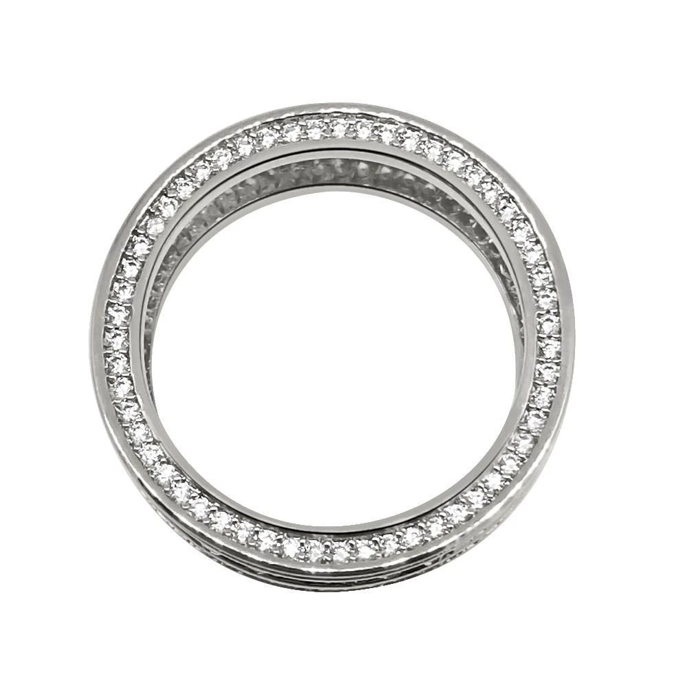 Channel Set Eternity Band Bling Bling Ring. Shine up your fingers with this shiny Eternity Hip Hop Ring. Channel Set Simulated Diamonds in the center surrounded by 2 rows of Micro Pave Set Stones PLUS Both Sides of the bling bling ring are covered in Stones. Rhodium Wrapped to look and feel like solid White Gold or Platinum for a fraction of the cost and keep on shining. Order your bling bling ring today and Style like a rap star!