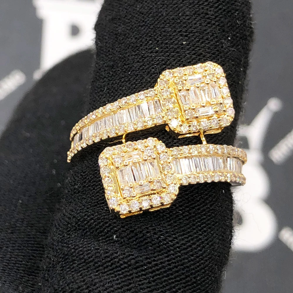 Cluster Wrap Baguette Diamond Ring 1.30cttw 10K White or Yellow Gold. Quality crafted Diamond ring iced out with a bling bling shine.  Custom Designer looking Mens Bling Bling Ring. Precision detailed prong Diamond Setting on this Diamond iced out ring. Beautiful big and bold look. Popular style Hip Hop Bling Bling Ring is crafted with 10K Yellow Gold and Genuine Natural Diamonds.