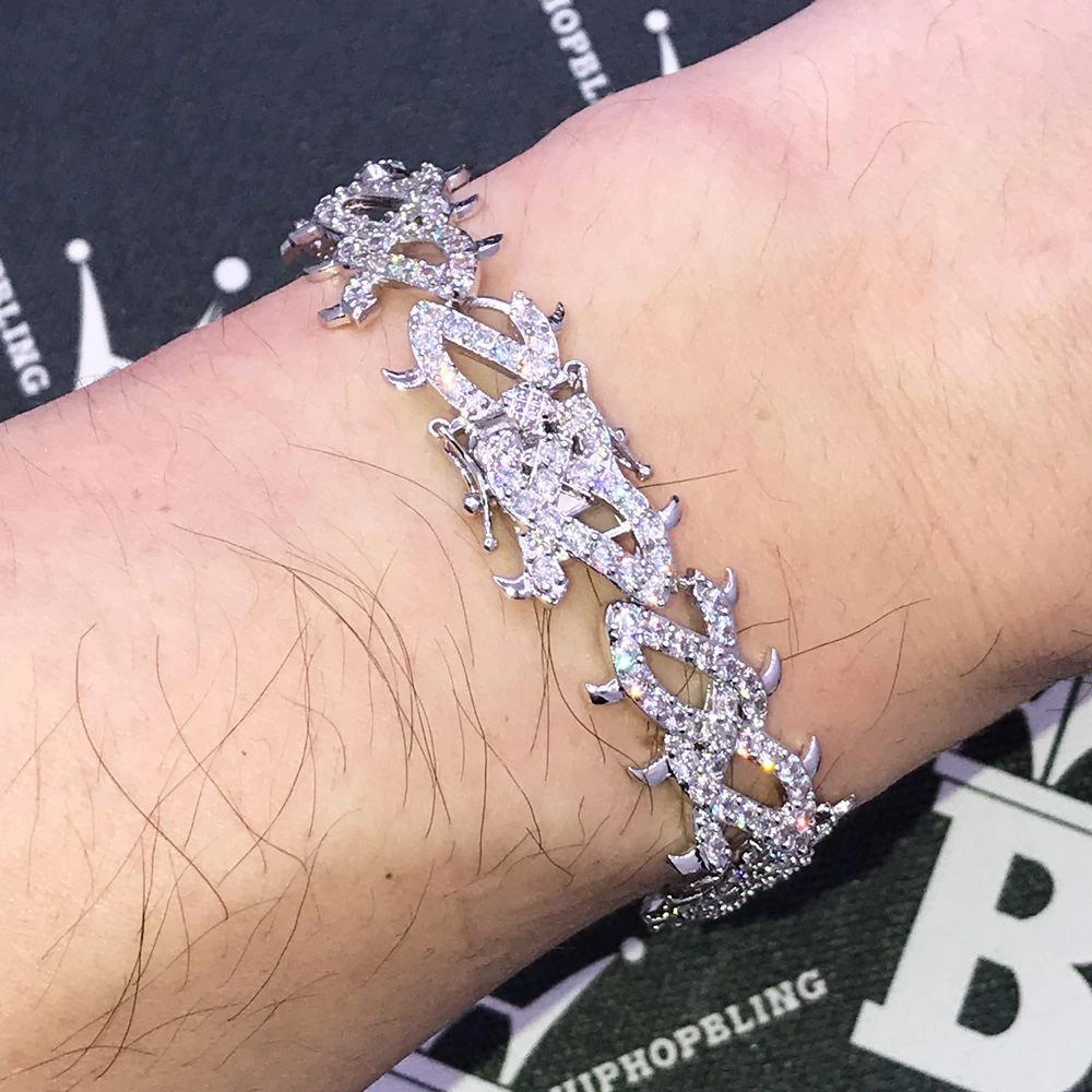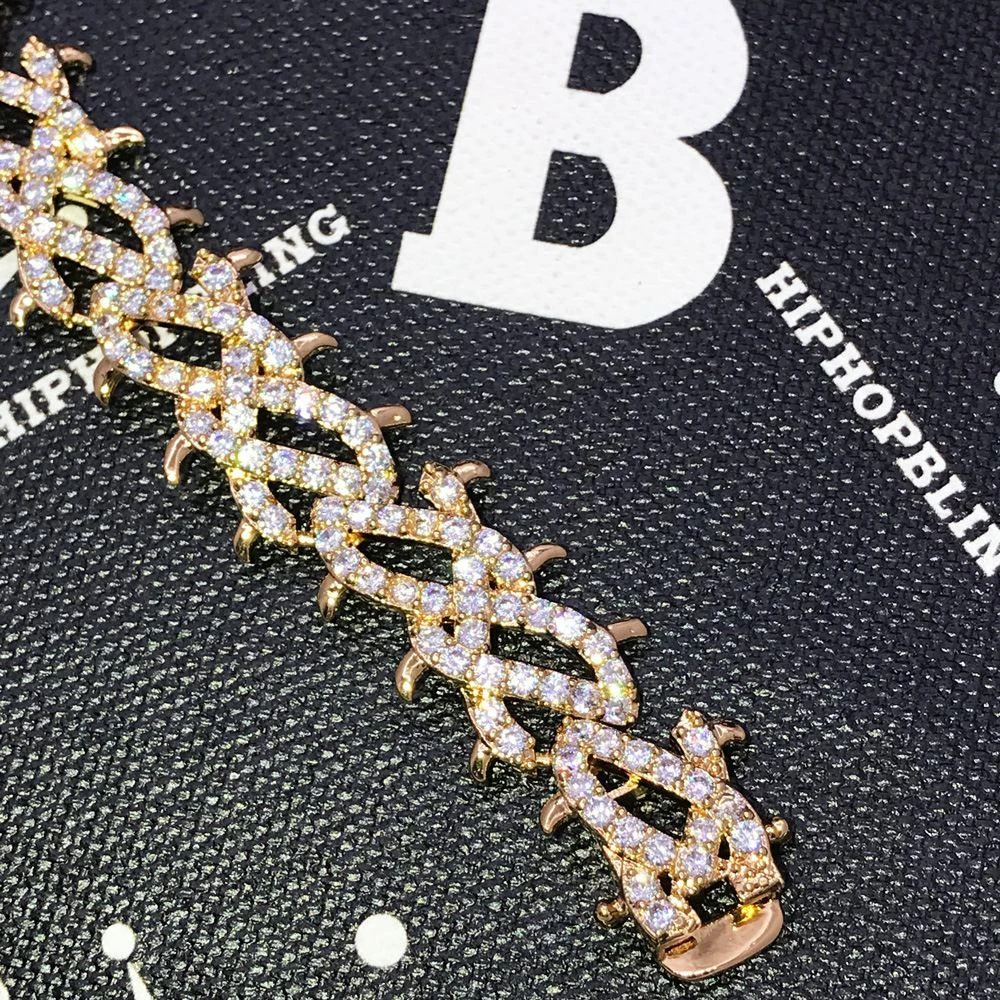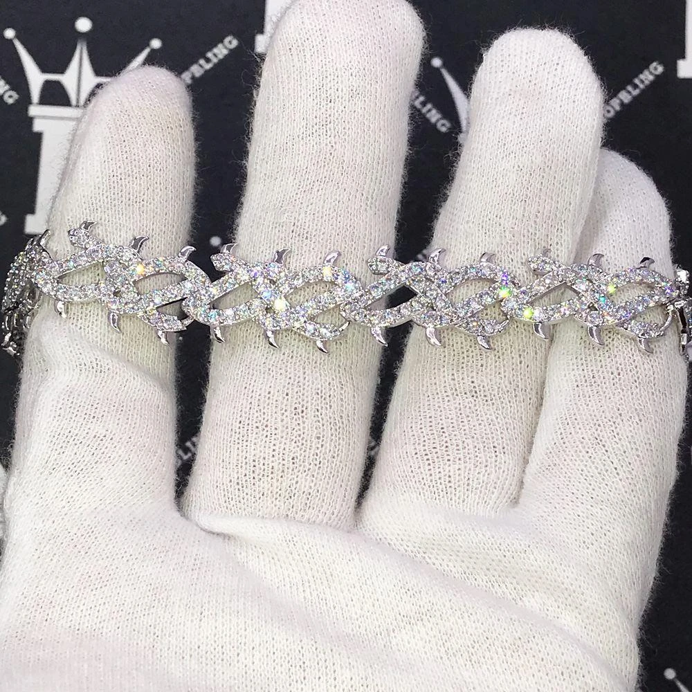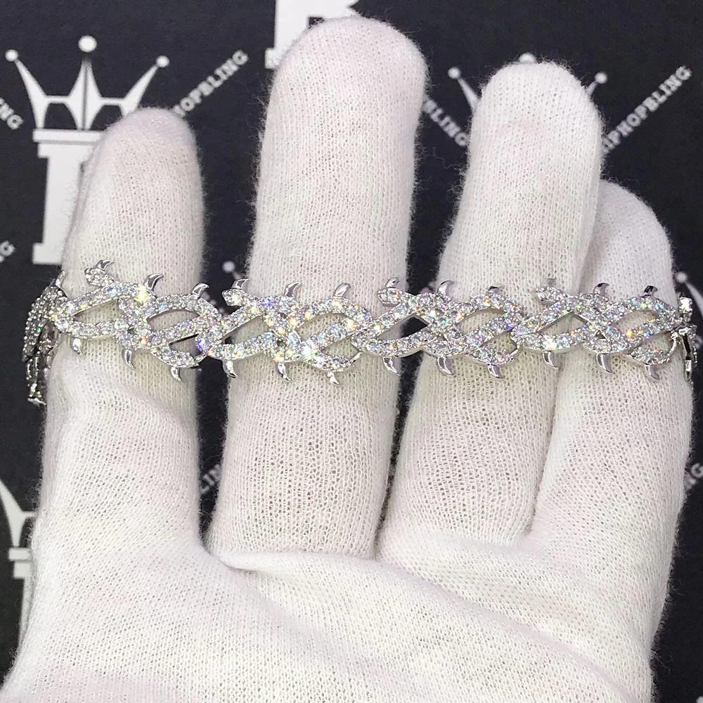 Crown of Thorns VVS CZ Iced Out Hip Hop Bracelet. Classic and Unique Style Bling Bling Bracelet. Iced out at all angles!!! Incredibly icy with VVS simulated diamond stones lighting up your wrist with the best shine possible. This iced out Bracelet shines like genuine diamonds. All hand setting, no glue. Hand Crafted to look, feel, and Shine Like Genuine Diamond Hip Hop Jewelry. We can custom make in 10K and 14K Solid Gold with Real Diamonds. Shine with the best hip hop jewels in the game.