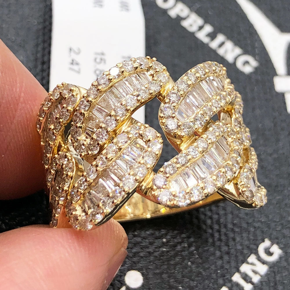 Cuban Baguette Diamond Ring 2.50cttw 10K Gold. Quality crafted Diamond ring iced out with a bling bling shine.  Custom Designer looking Mens Bling Bling Ring. Precision detailed prong Diamond Setting on this Diamond iced out ring. Beautiful big and bold look. Popular style Hip Hop Bling Bling Ring is crafted with 10K Yellow Gold or 10K White Gold and Genuine Natural Diamonds.