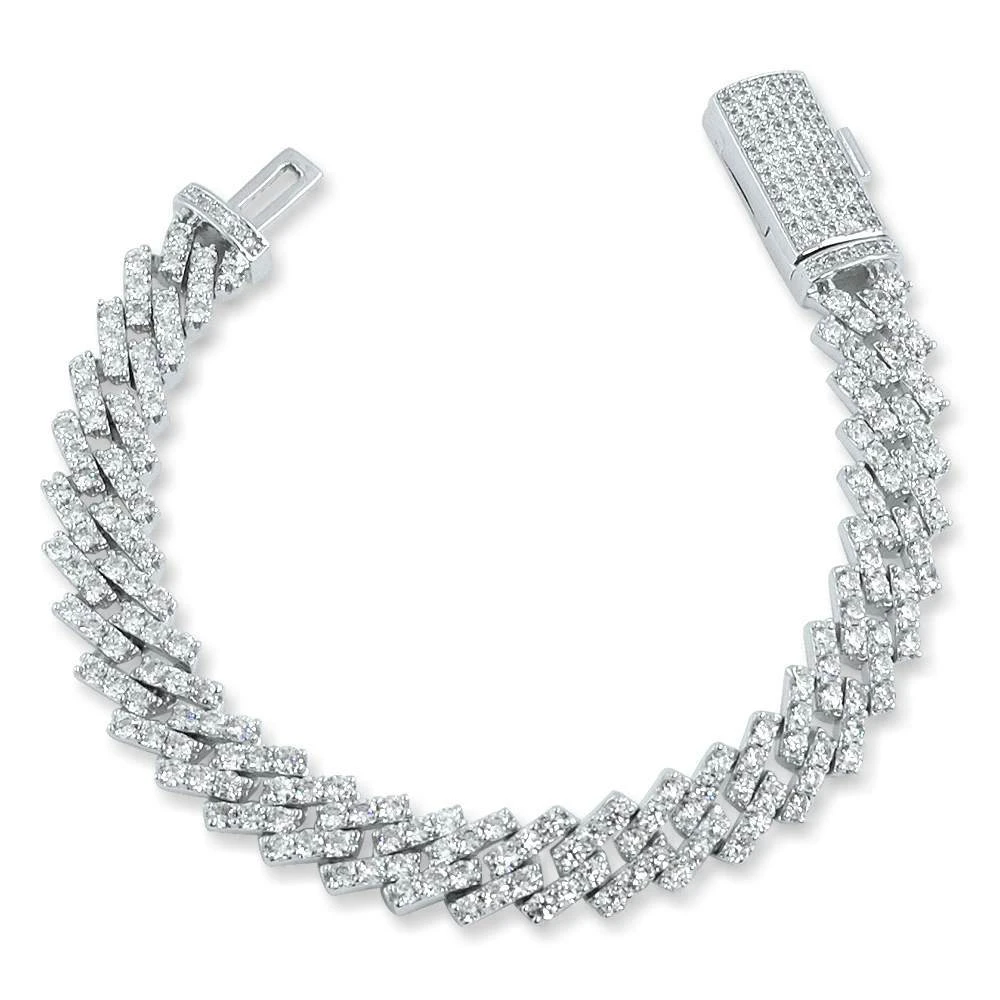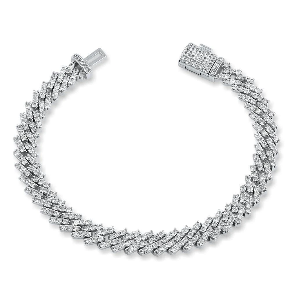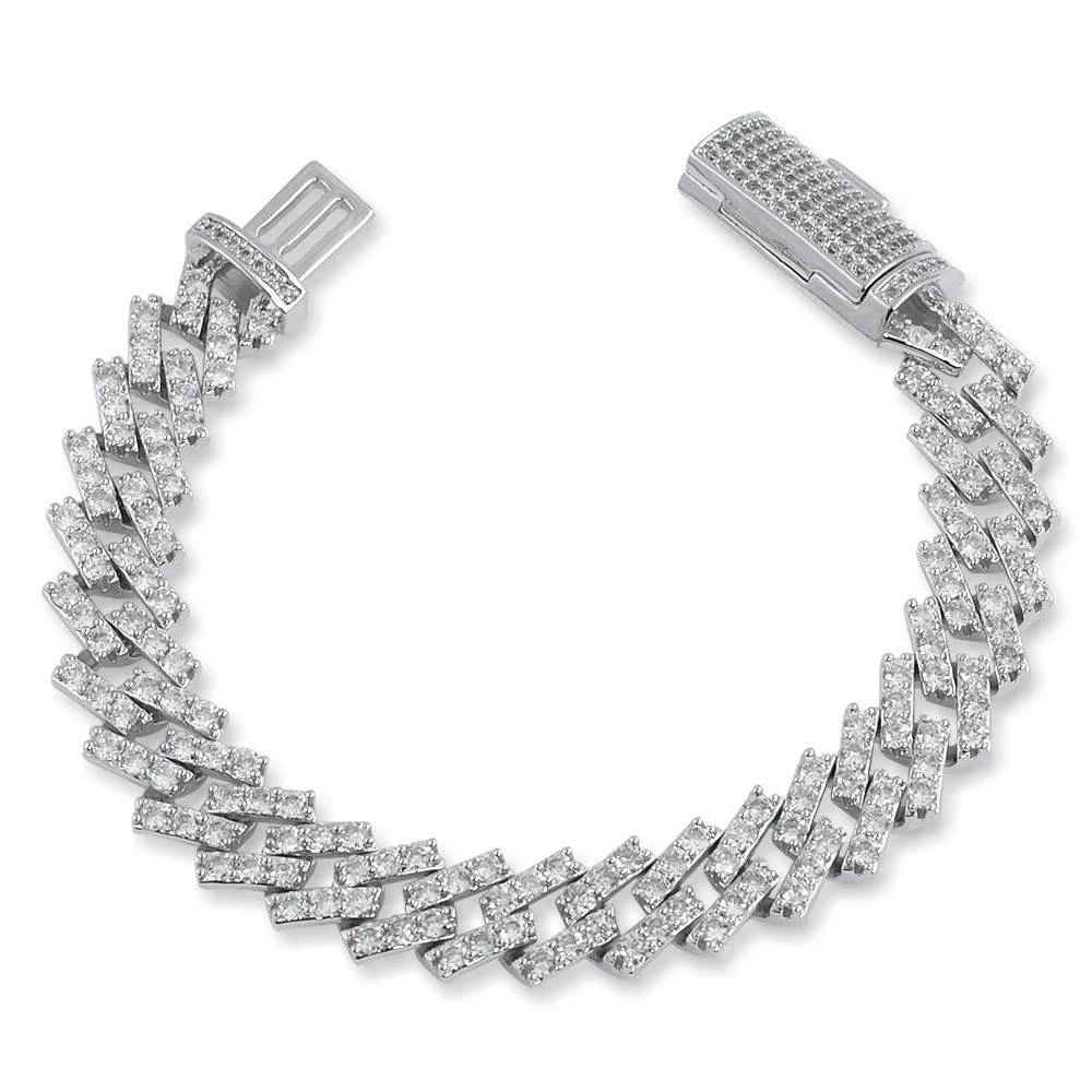 Cuban Box Iced Out Hip Hop Bracelet 3 Sizes. Beautiful tennis style cuban box shaped links iced out for maximum shine. Exclusive Unique Style Bling Bling Bracelet. Incredibly icy with VVS simulated diamond stones lighting up your wrist with the best shine possible. This iced out Bracelet shines like genuine diamonds. All hand setting, no glue. Hand Crafted to look, feel, and Shine Like Genuine Diamond Hip Hop Jewelry. We can custom make in 10K and 14K Solid Gold with Real Diamonds. Shine with the best hip hop jewels in the game.