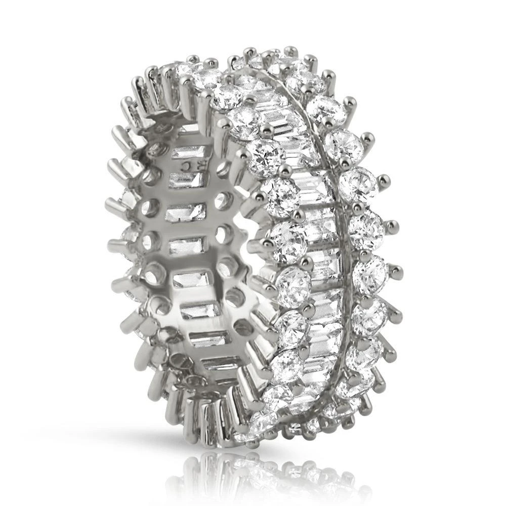 Custom Baguettes CZ Chunky Ice Eternity Bling Bling Ring in Rhodium