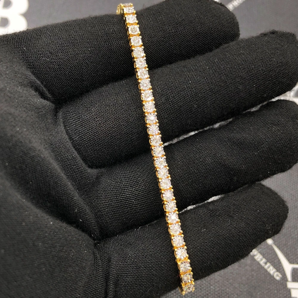 Diamond Tennis Bracelet 10K Gold Miracle Setting. Micro Pave Prong Set round cut diamonds. Miracle setting to look like a 10 Carat Diamond Bracelet that would cost over $7,500.  Ice your wrist with this incredible iced out diamond tennis wristwear. Diamonds are real and hand set with prongs. Order your iced out diamond tennis bracelet today.
