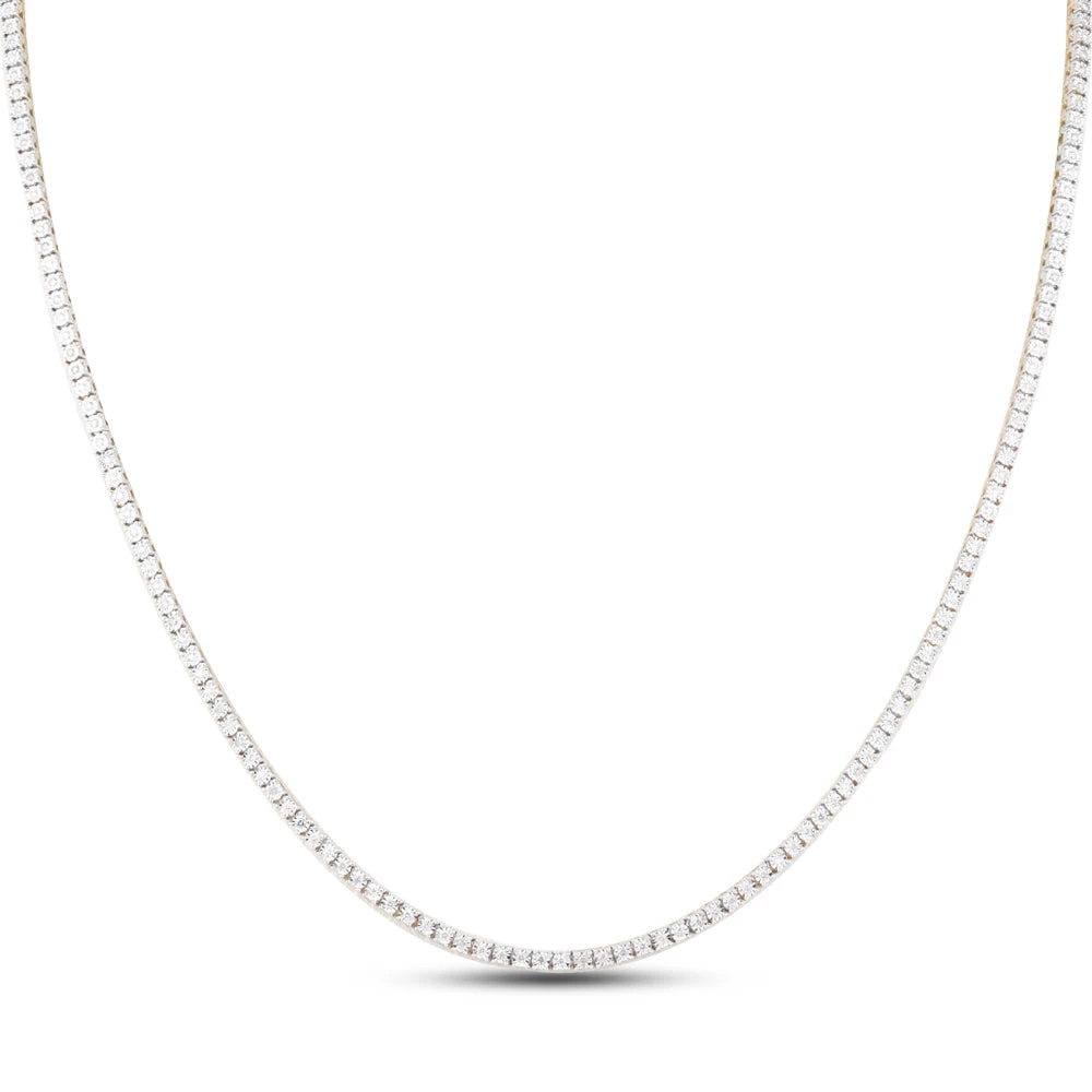 Diamond Tennis Chain 10K Gold 2.3MM Miracle Setting. Micro Pave Prong Set round cut diamonds. Miracle setting to look like a 10 Carat Diamond Chain that would cost over $10,000.  Ice your neck with this incredible iced out diamond tennis chain. Diamonds are real and hand set with prongs. Order your iced out diamond tennis chain today.