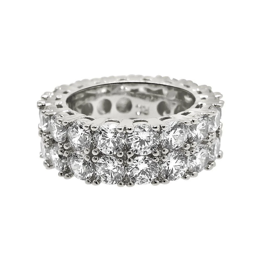 Double Eternity Band 360Rhodium CZ Bling Bling Ring. Shine up your fingers with this shiny Eternity Hip Hop Ring. Double Row4MM CZ Simulated Diamonds. Twice the bling as the classic 1 row eternity bling bing band. The Bling Bling Shine on this Ring is Incredible. Rhodiumto look and feel like solidWhite Gold or Platinum for a fraction of the cost and keep on shining. Order your bling bling ring today andStyle like a rap star!