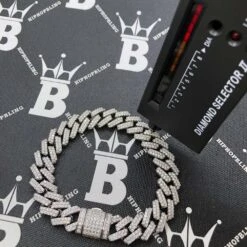 Figaro Moissanite Bracelet Iced Out .925 Sterling Silver. This iced out Bracelet is simply breathtaking and displays an incredible bling bling shine. We insisted on using the finest Moissanite stones available to craft these perfect high end ‘diamond’ Iced Out Cuban Link bracelets. Moissanite stones are carbon based stones just like real Diamonds*. The benefit of our Moissanite Cuban Link bracelets are that you get a better shine for much less money. Our Moissanite Stones have a higher refractive index than real Diamonds and rank 9.5 on Mohs hardness scale.
