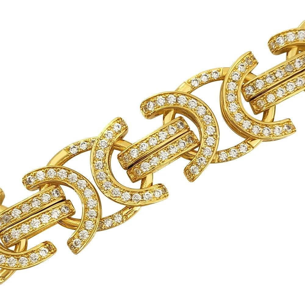 Flat Byzantine Bling Bling Hand Made Bracelet. Crafted with intricate details and precise hand stone setting. This iced out Byzantine Bracelet is Gold wrapped to last long and stay shining bright on your wrist. Imagine rolling up to the club with one of these on your wrist. Blind them haters from across the block. Order your Bling Bing Byzantine Bracelet Today.