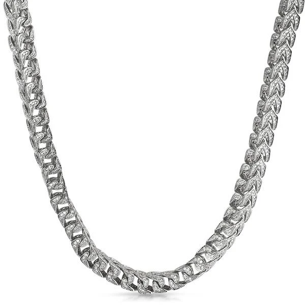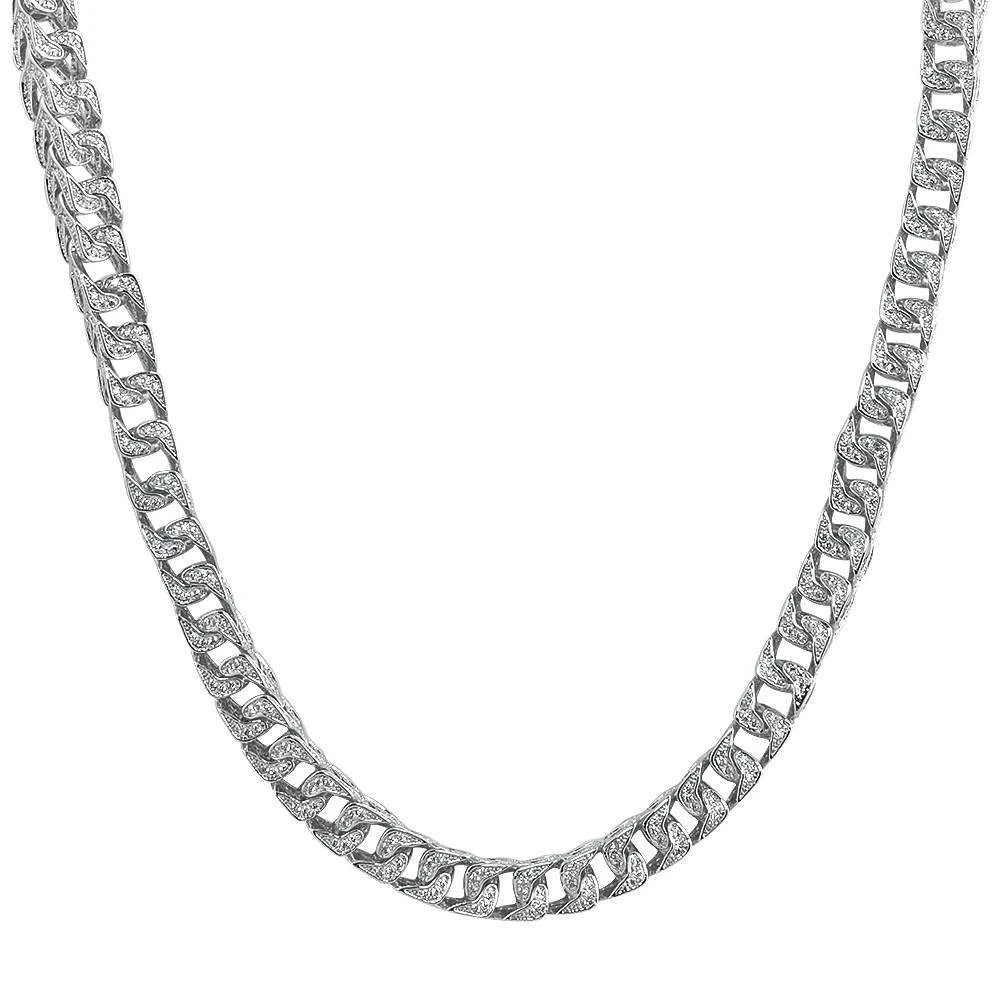 Franco CZ Bling Bling Chain. This is a large 8MM wide Bling Bling Version of a Classic Hip Hop Chain. The Franco Chain has been one of the most popular hip hop chains in history. The classic 3D Box Cuban link look is a beauty. With this uniquely crafted chain the tiny simulated diamond stones are all hand set with prongs all over each and every link of the chain to give it an amazing bling bling shine. Get the look of a millionaire celebrity for an amazing price and order today.