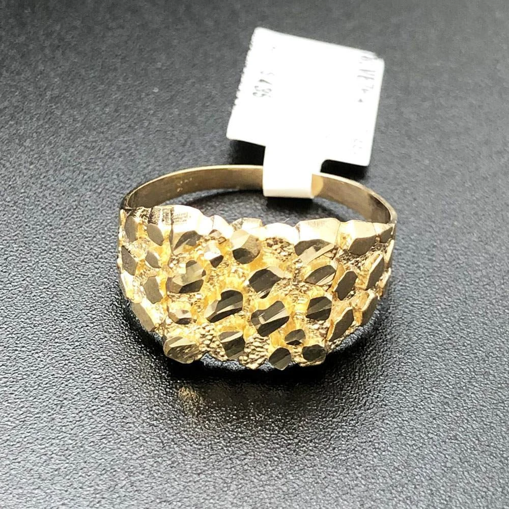 Golden Nugget Medium 10K Yellow Gold Ring. Crafted from Solid 10K Yellow Gold and highly detailed with Diamond Cuts for added sparkle. All real Gold quality made at an affordable price.