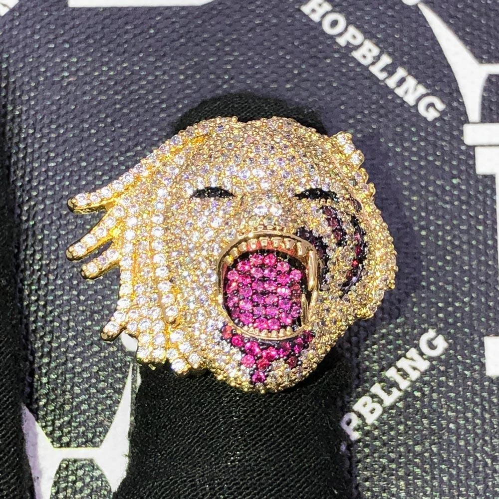 Half Man Half Beast Iced Out Hip Hop Ring. Unique Iced Out Ring with a solid smooth backing for comfort. Micro pave Prong Set Fine VVS CZ Simulated Diamond Stones. Realistic bling bling shine like what you get from genuine diamonds. Quality made to look like fine iced out hip hop jewelry. Very unique and rare, limited production. Yellow Gold or White Gold Wrapped to look and feel like solid gold for a fraction of the cost. Order today!