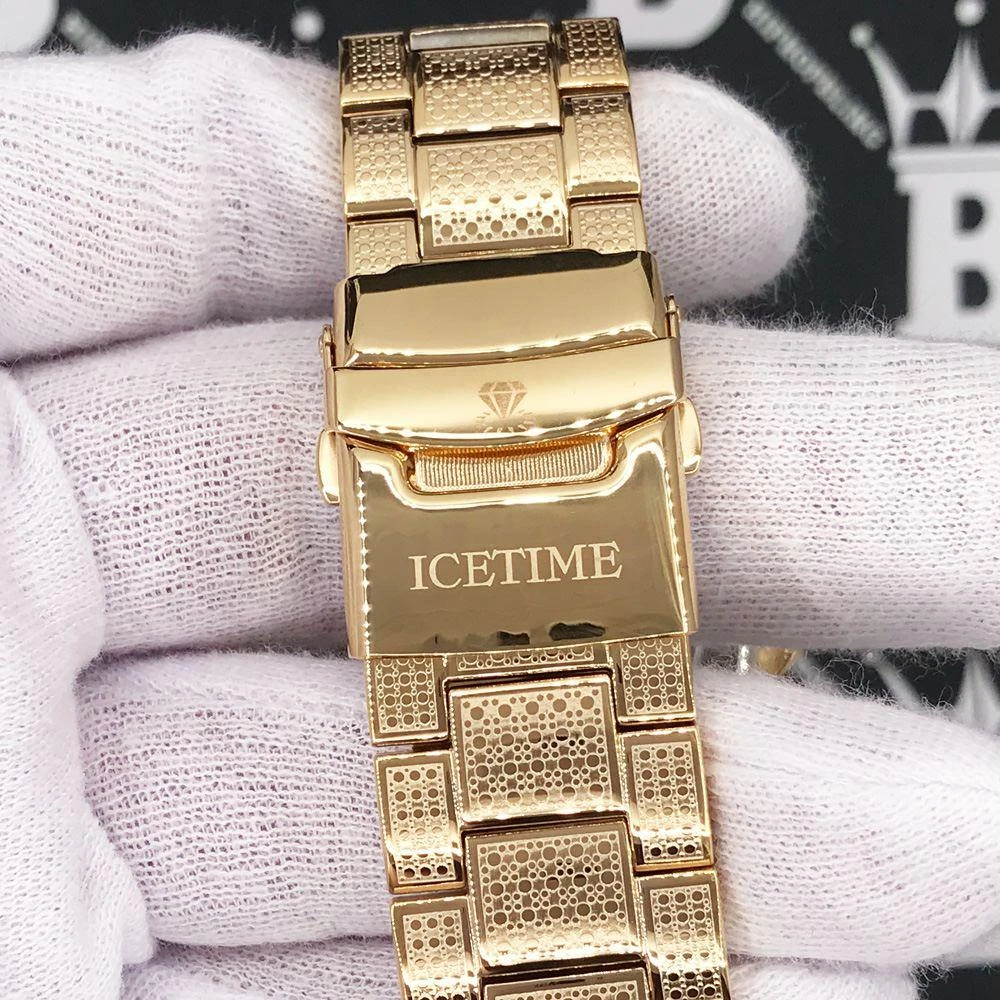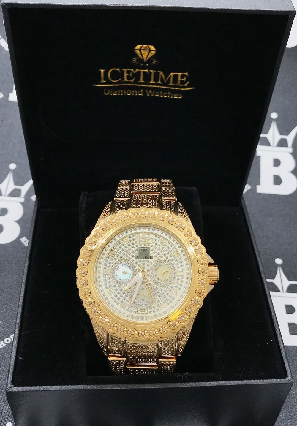 Ice Time Genuine Diamond Watch. Heavyweight Stainless Steel Watch with .25 Carats of Genuine Diamonds around the bezel. The illusion setting makes it look like a 5 carat diamond bezel. For a very low price you can have this beautiful Hip Hop Diamond watch on your wrist.Â