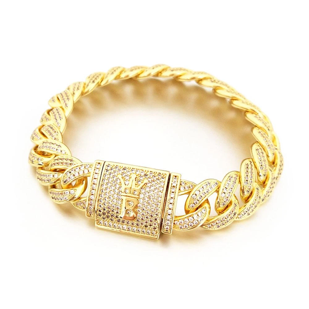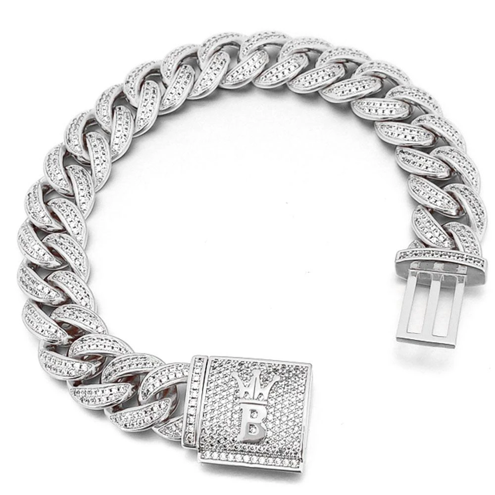 HIPHOPBLING Classic 15MM Wide Cuban Bling Bling Bracelet. Features a secure Snap Lock Clasp (20MM Wide) with the Hip Hop Bling Logo. Highly detailed with intricate details and stone setting. All stones are VVS Simulated Diamonds that are prong set. HIPHOPBLING Offering you the Best Hip Hop Jewelry Since 2003