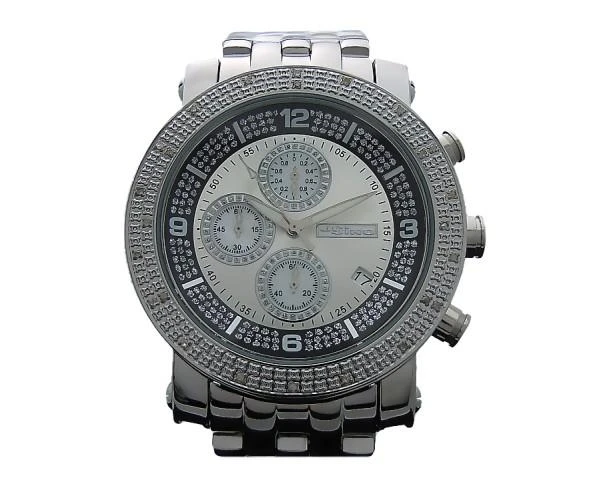 Silver Dial Chronograph .25 Carat Diamond Hip Hop Watch JoJino. Brand New JoJino Watch with Genuine Diamonds on the bezel. Quality Hip Hop Diamond Watch with good details and real Bling Bling. Iced Out with real diamonds. Comes in a Box with 2 Extra Bands. 1 Year Warranty.
