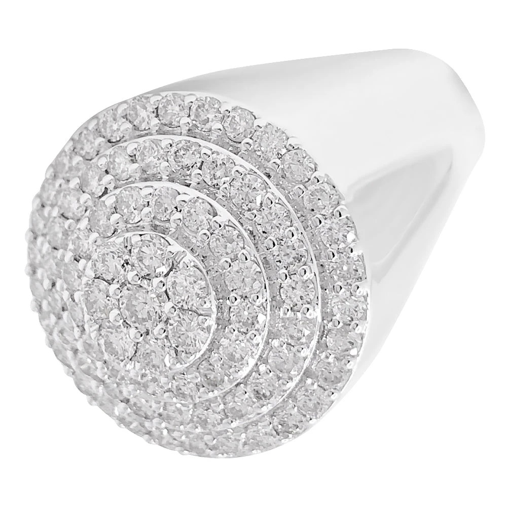 Layered Circle 1.70cttw Diamond Ring 10K White Gold. Quality crafted Diamond ring iced out with a bling bling shine. Custom Designer looking Mens Bling Bling Ring. Precision detailed prong Diamond Setting on this Diamond iced out ring. Beautiful big and bold look. Popular style Hip Hop Bling Bling Ring is crafted with 10K Yellow Gold and Genuine Natural Diamonds.