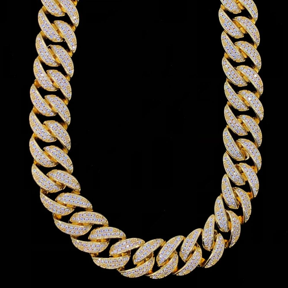Miami Cuban 13MM Hip Hop Bling Bling CZ Iced Out Chain. This classic Mariner chain micro pave fully iced out to add maximum shine to this normally basic chain. Highly detailed with intricate details and stone setting. All stones are VVS Simulated Diamonds that are prong set.