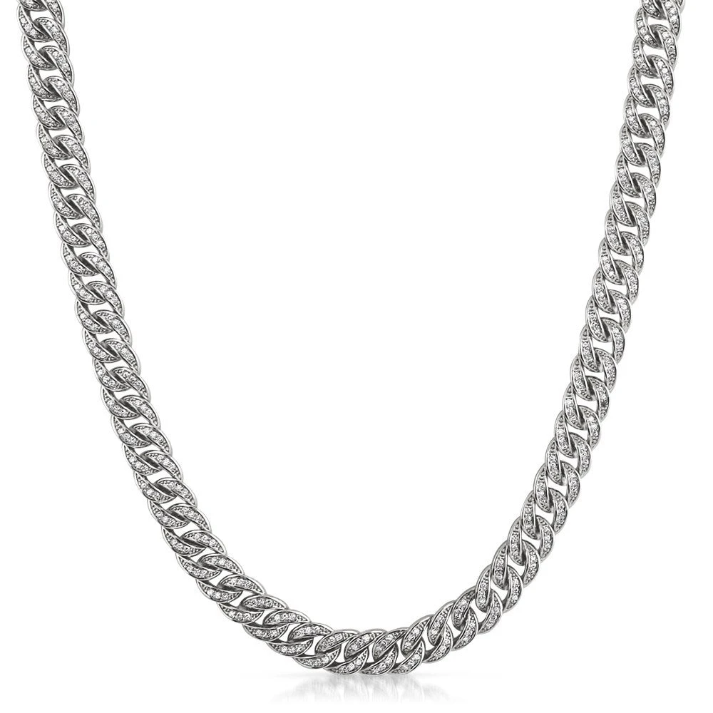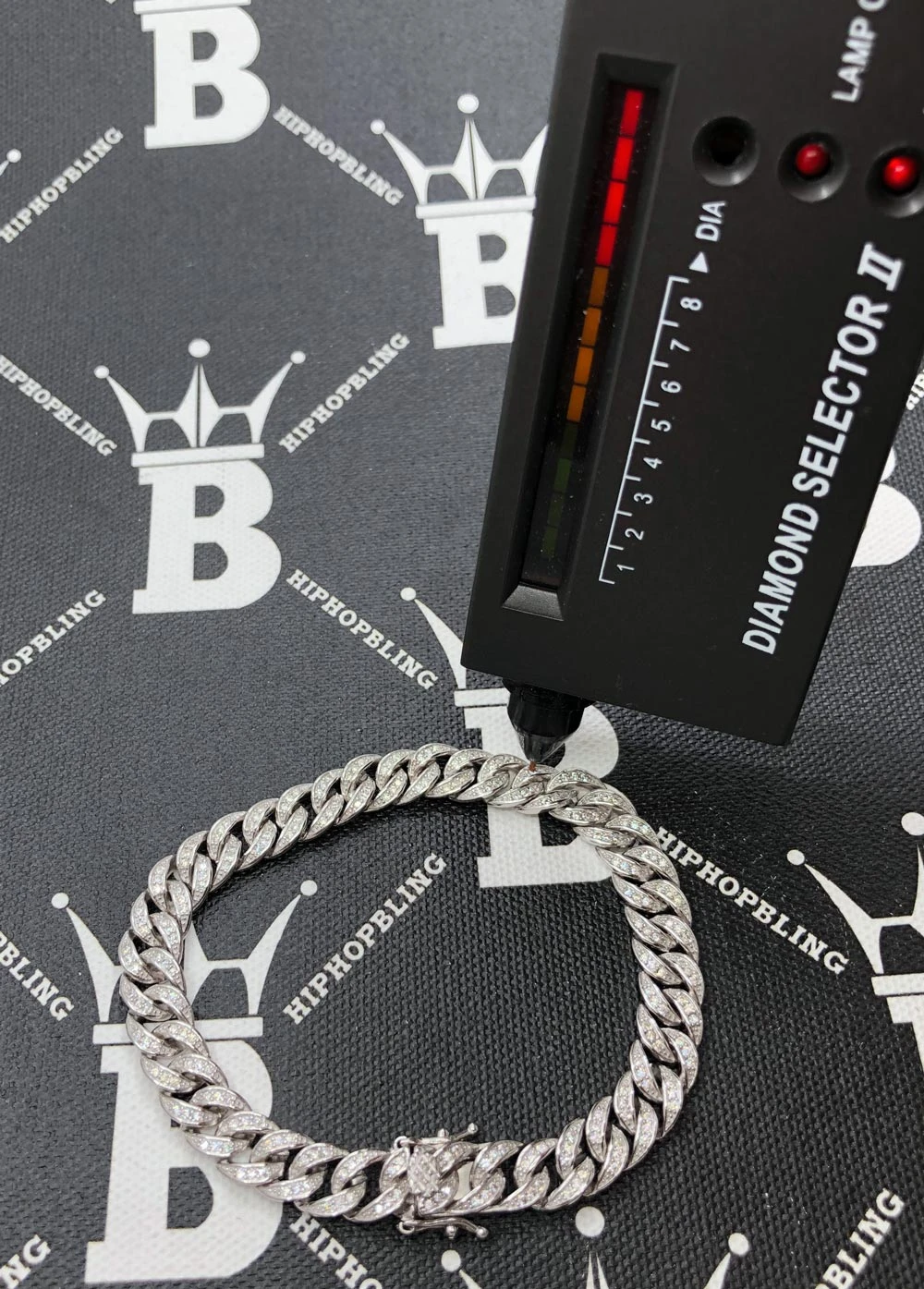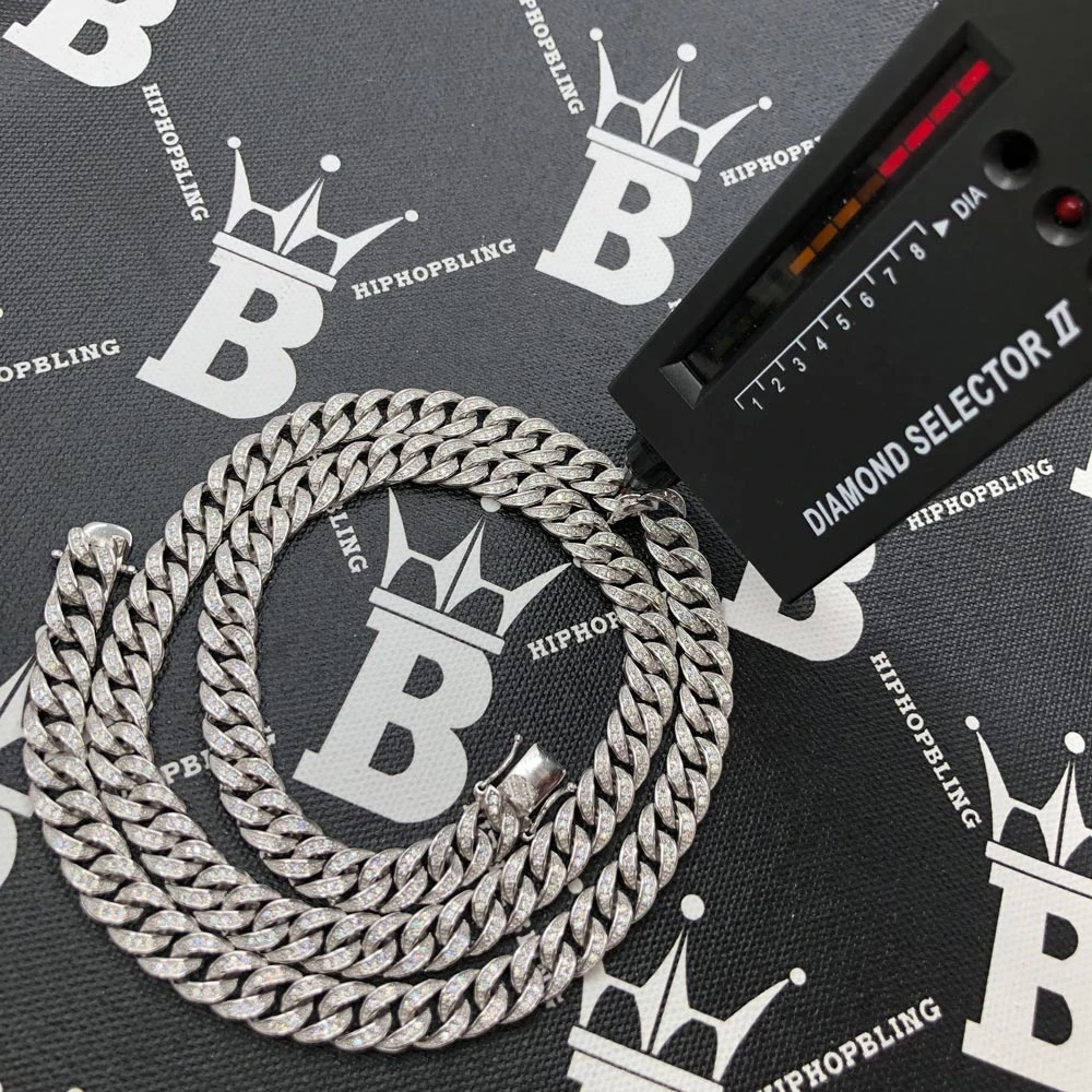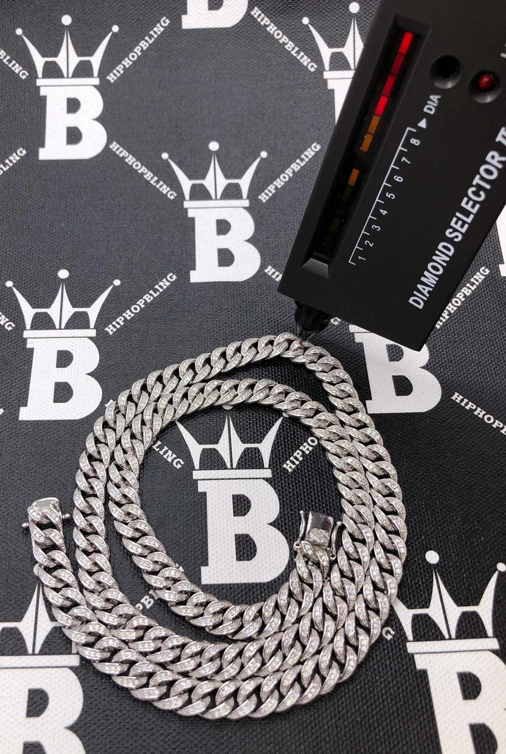 Moissanite 8MM Cuban Iced Out Chain .925 Sterling Silver. This iced out Cuban Chain is simply breathtaking and displays an incredible bling bling shine. We insisted on using the finest Moissanite stones available to craft these perfect high end ‘diamond’ Iced Out Cuban Link Necklaces. Moissanite stones are carbon based stones just like real Diamonds*. The benefit of our Moissanite Cuban Link Chains are that you get a better shine for much less money. Our Moissanite Stones have a higher refractive index than real Diamonds and rank approximately 9.5 on Mohs hardness scale. Â