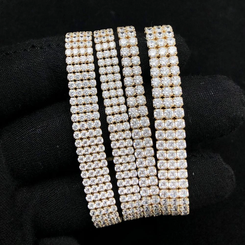 Multi Row Tennis Bracelet 2MM VVS CZ 10K Yellow Gold. They shine like diamonds, but they are not natural diamonds saving you thousands of dollars. Each stone is 2MM and hand set with an incredible bling bling shine. Get your wrist iced out for the low with REAL Gold so it will never tarnish or fade.