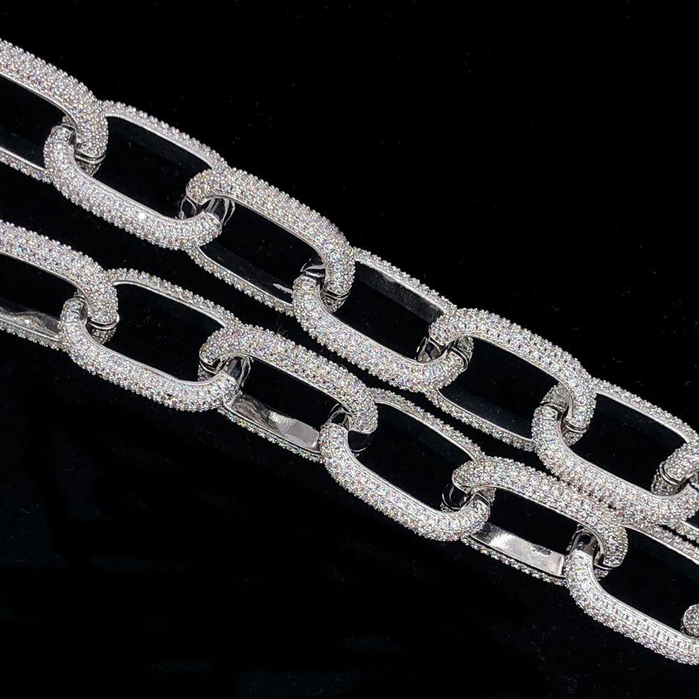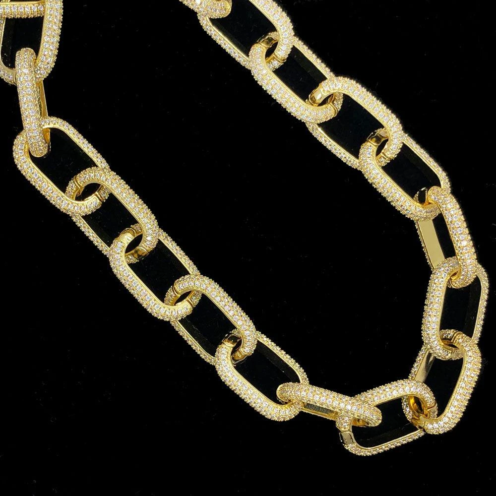 Oval Rolo Link CZ Hip Hop Bling Bling Chain. This unique hip hop chain micro pave fully iced out to add maximum shine to your neck. Highly detailed with intricate details and stone setting. All stones are VVS Simulated Diamonds that are prong set.