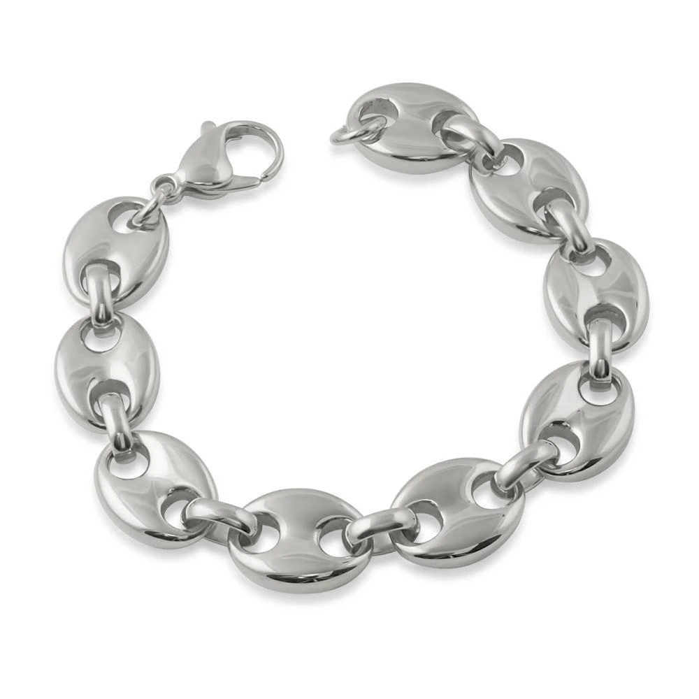 Pignose Bubble Mariner Polished 316L Stainless Steel Bracelet. High polished and high end looking. White Gold Version will never tarnish or fade. Our Yellow Gold Color version is made to last years.