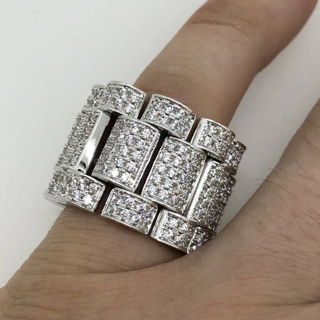 Presidential Link Rhodium CZ Bling Bling Ring