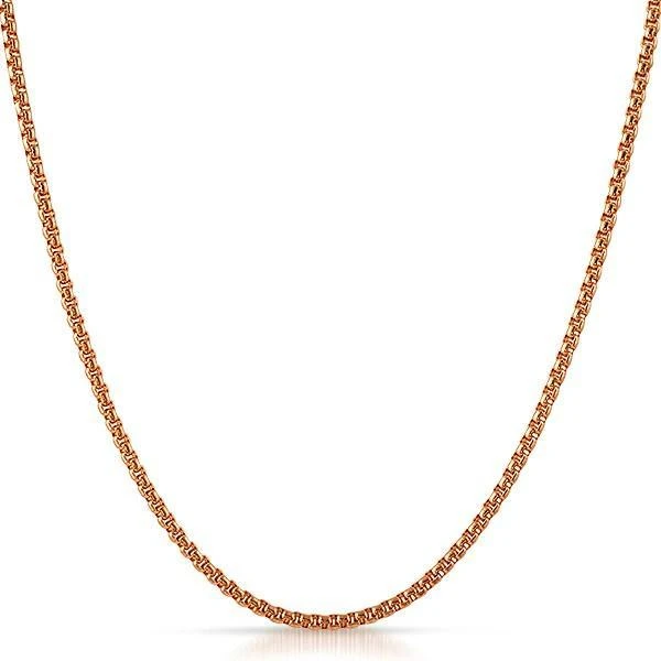 Rose gold rounded box chain. Crafted from solid Stainless Steel and IP Rose Gold wrapped and made to look and feel like solid gold. This hip hop chain is high polished and matches well with our rose gold micro sized iced out pendants. Order yours today.