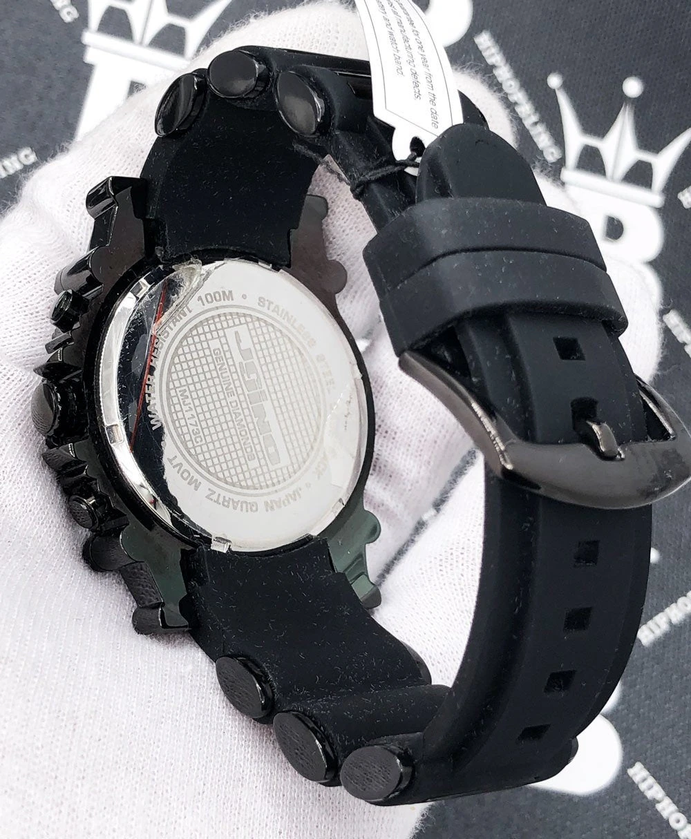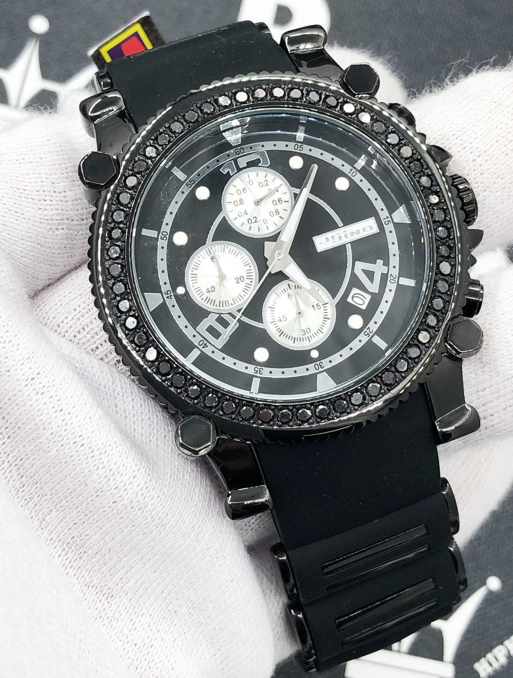 Rubber Strap 2.25 Carat Black Diamond Hip Hop Watch JoJino. Brand New JoJino Watch with Genuine Diamonds on the bezel. Quality Hip Hop Diamond Watch with good details and real Bling Bling. Iced Out with real diamonds. Comes in a Box with 2 Extra Bands. 1 Year Warranty.