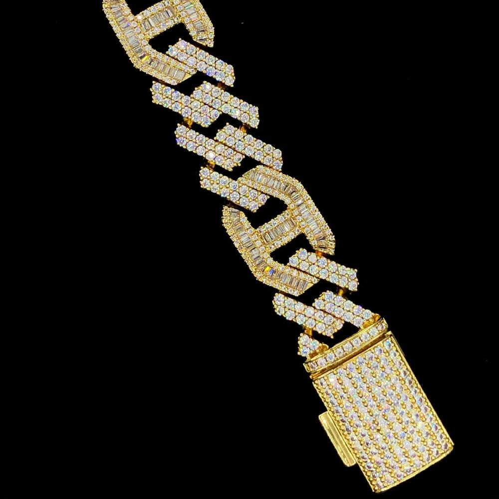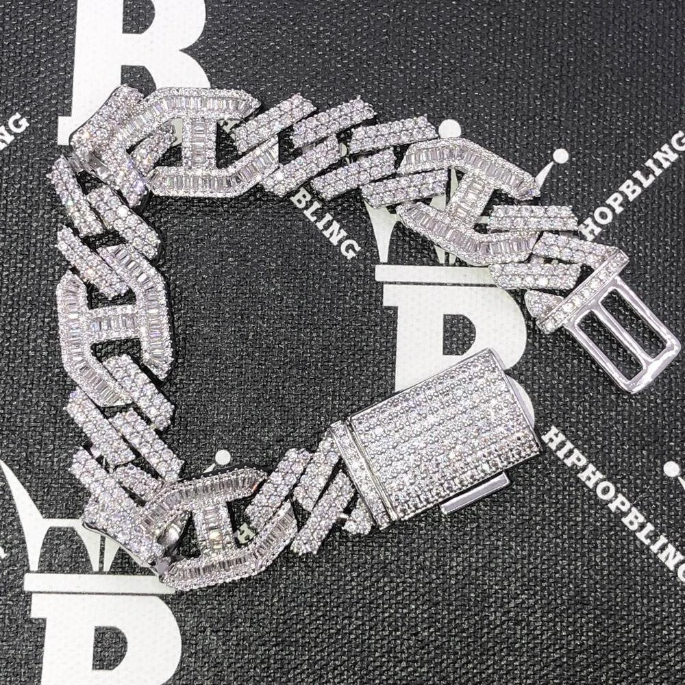 Sharp Baguette Mariner Figaro Iced Out Hip Hop Bracelet. Classic and Unique Style Bling Bling Bracelet. A Classic Chain Iced Out our way. Incredibly icy with VVS simulated diamond stones lighting up your wrist with the best shine possible. This iced out Bracelet shines like genuine diamonds. All hand setting, no glue. Hand Crafted to look, feel, and Shine Like Genuine Diamond Hip Hop Jewelry. Shine with the best hip hop jewels in the game.
