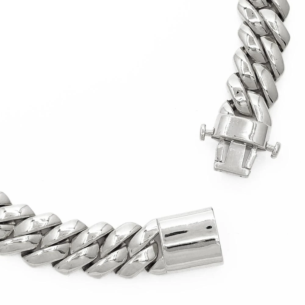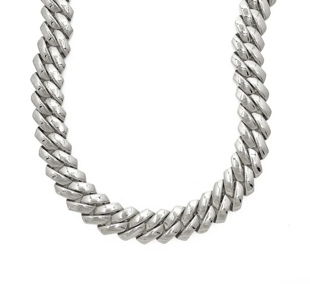 Sharp Cuban Polished Hip Hop Chain. Heavyweight popular sharp hip hop cuban link chain with tight links. High polished and shiny that will give your neck a bold look. Features a dual push button lock to stay securely on your neck.