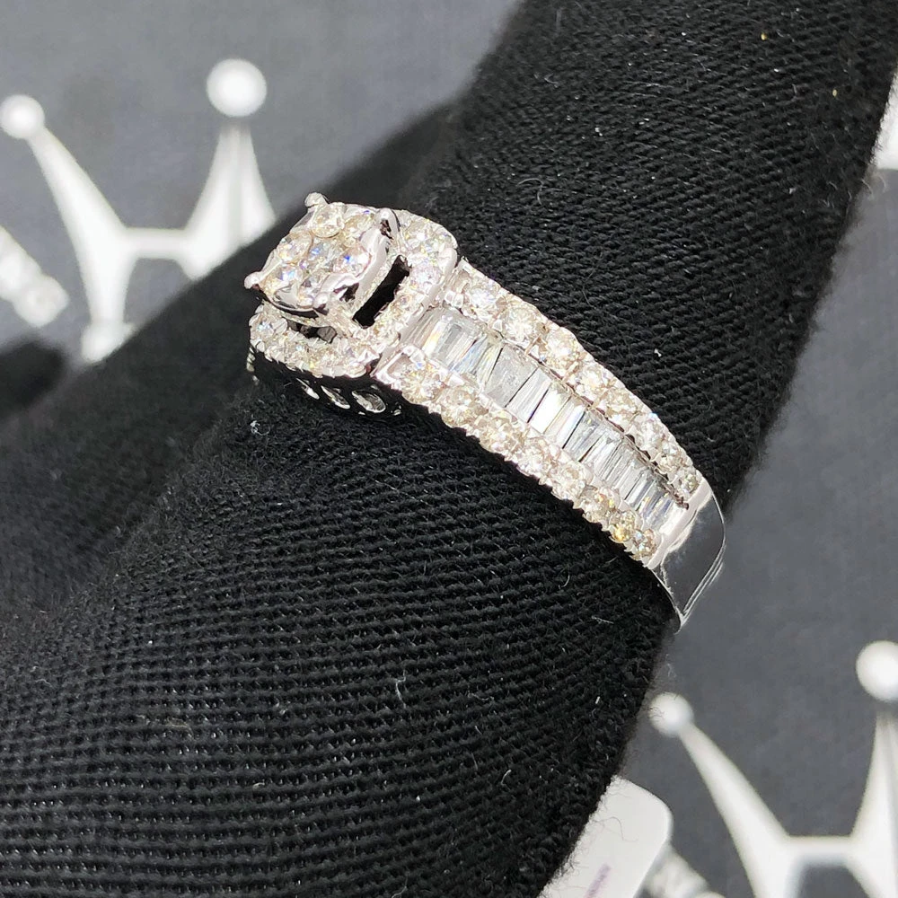 Solitaire Baguette Diamond Ring 1.37cttw 10K White Gold. Quality crafted Diamond ring iced out with a bling bling shine.  Custom Designer looking Mens Bling Bling Ring. Precision detailed prong Diamond Setting on this Diamond iced out ring. Beautiful big and bold look. Popular style Hip Hop Bling Bling Ring is crafted with 10K Yellow Gold and Genuine Natural Diamonds.