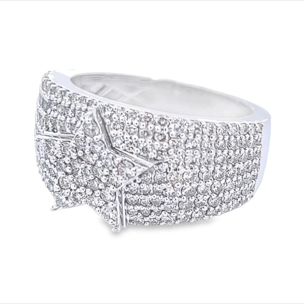 Star Pave Diamond Ring 2.35cttw 10K Gold. Quality crafted Diamond ring iced out with a bling bling shine.  Custom Designer looking Mens Bling Bling Ring. Precision detailed prong Diamond Setting on this Diamond iced out ring. Beautiful big and bold look. Popular style Hip Hop Bling Bling Ring is crafted with 10K Yellow Gold or 10K White Gold and Genuine Natural Diamonds.